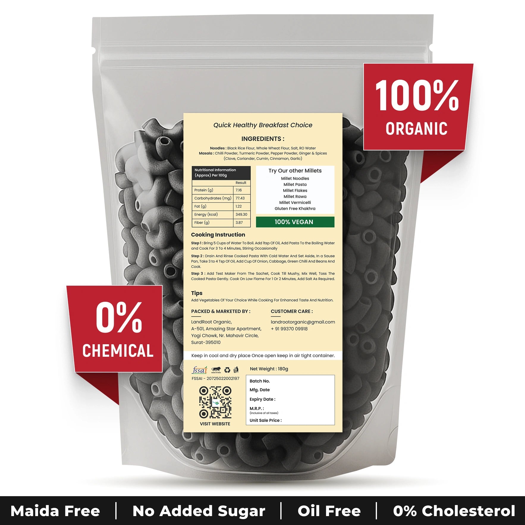 - Certified Organic Black Rice Pasta: Made from 100% organic black rice, free from harmful chemicals and pesticides.