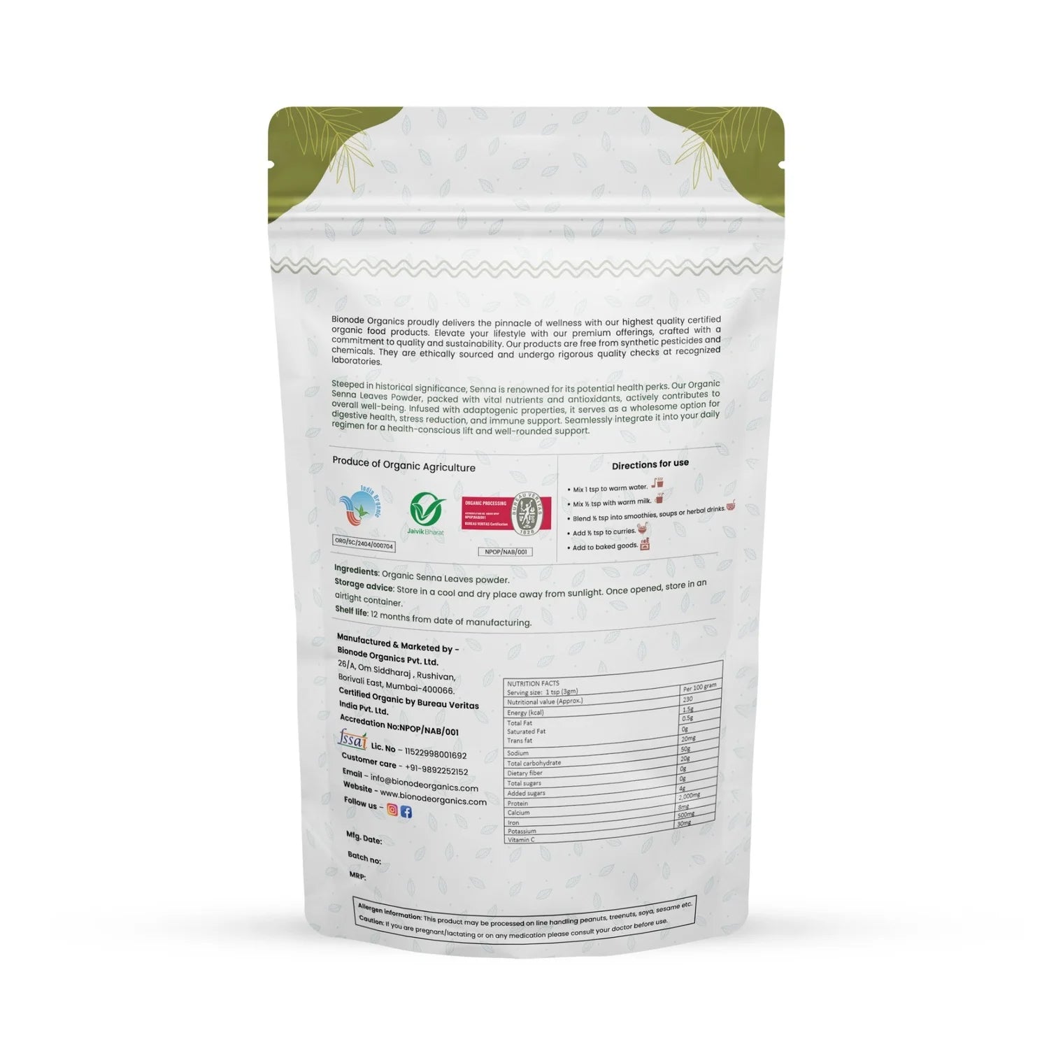 Bionode Organic Senna leaves Powder