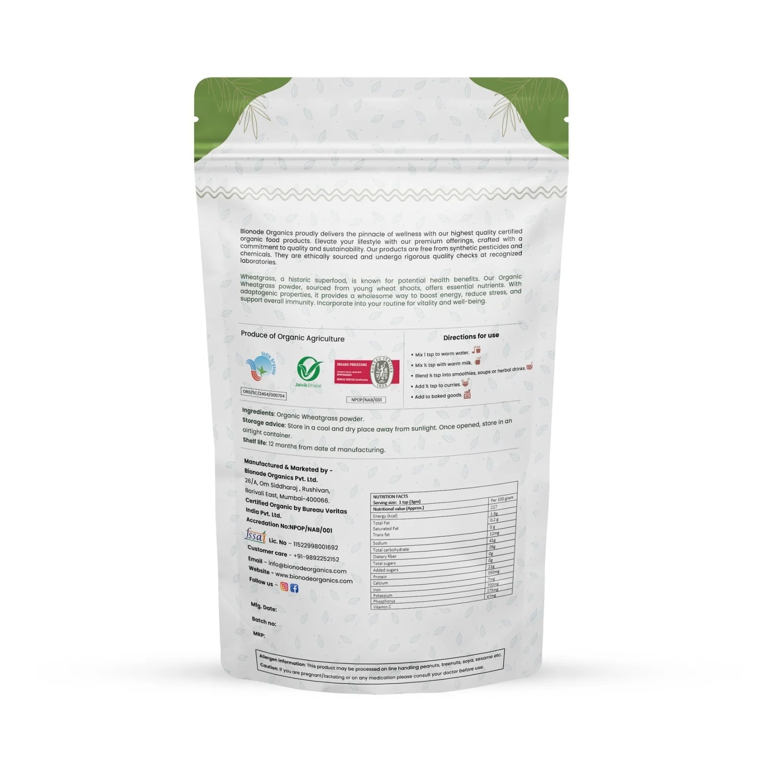 Bionode Organic Wheatgrass Powder
